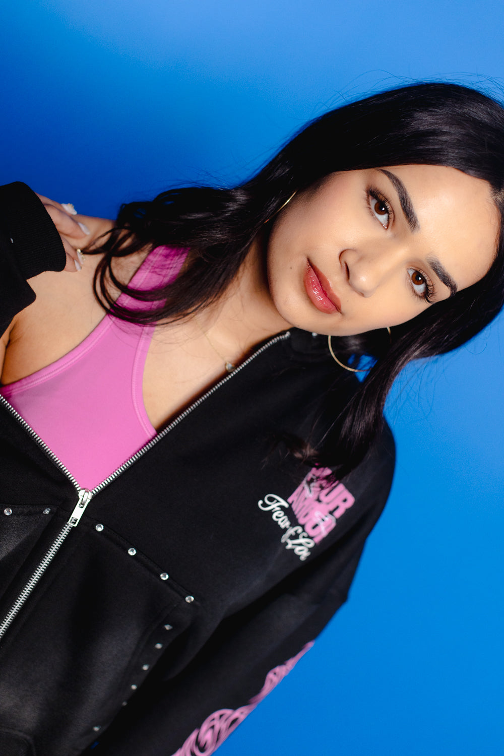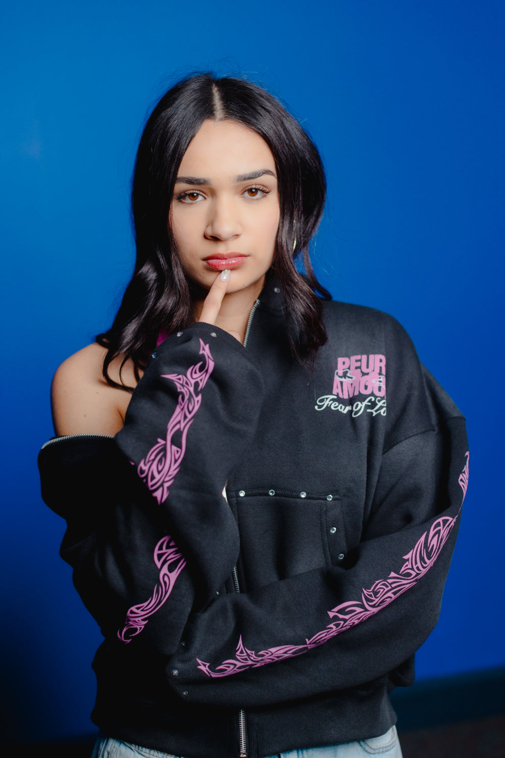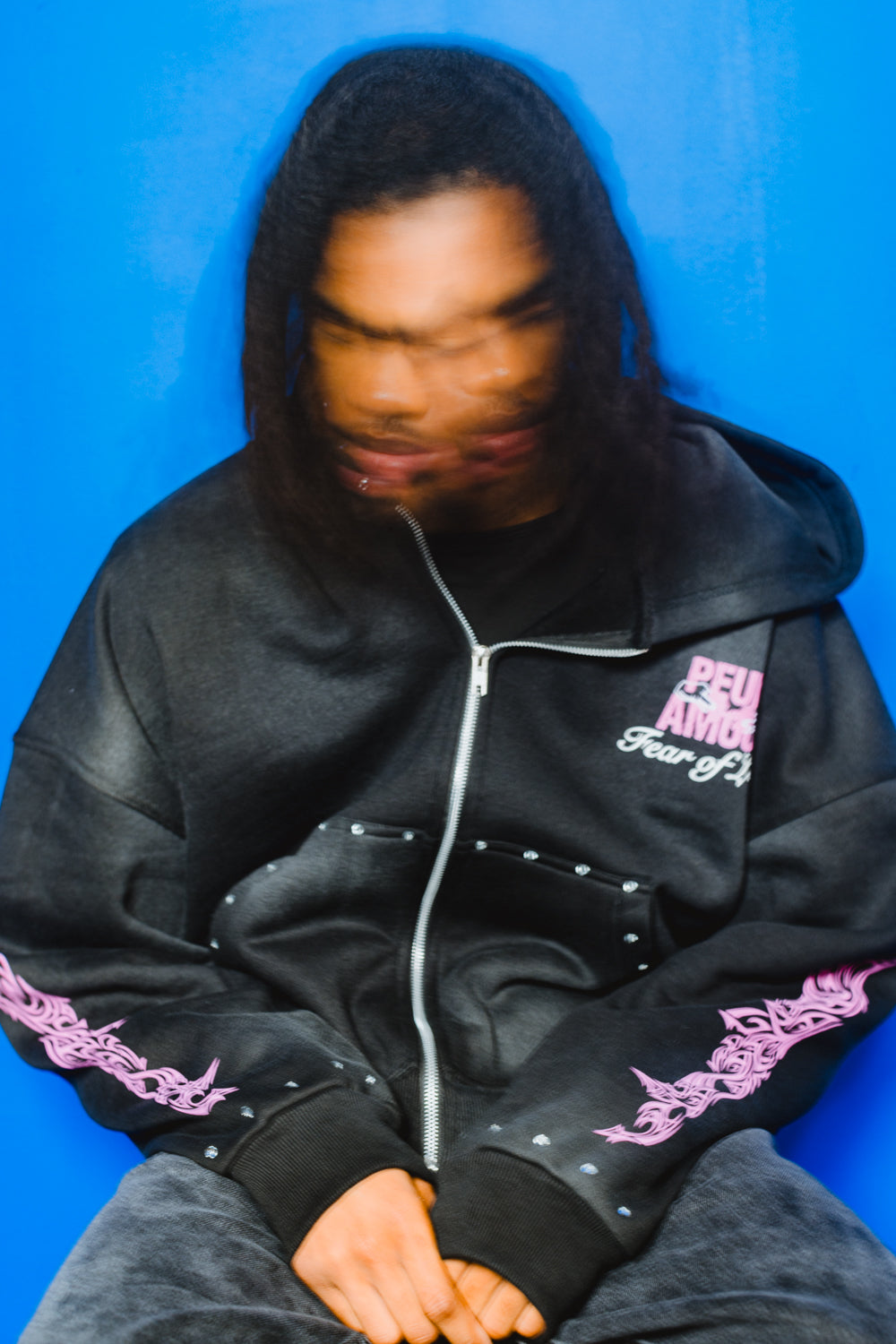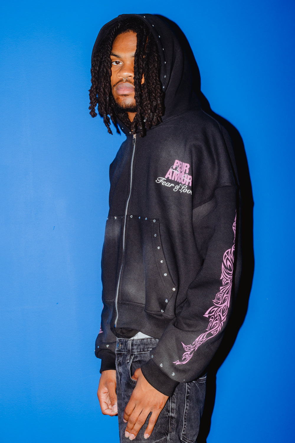 Peuramour Black And Purple Zip up hoodie